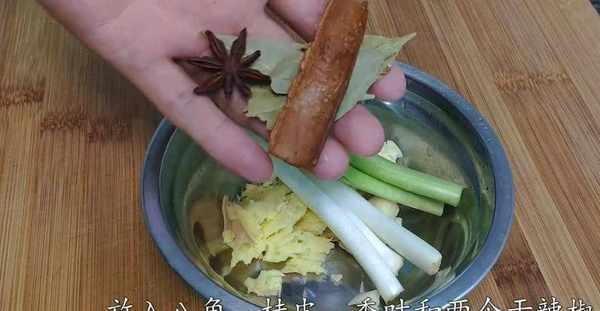 辅料:大蒜、生姜、葱段、八角、桂皮、香叶、干辣椒、白糖、盐生抽、蚝油、料酒、十三香