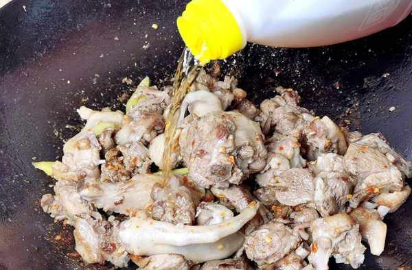 然后撒多点料酒去腥增香,翻炒1分钟。