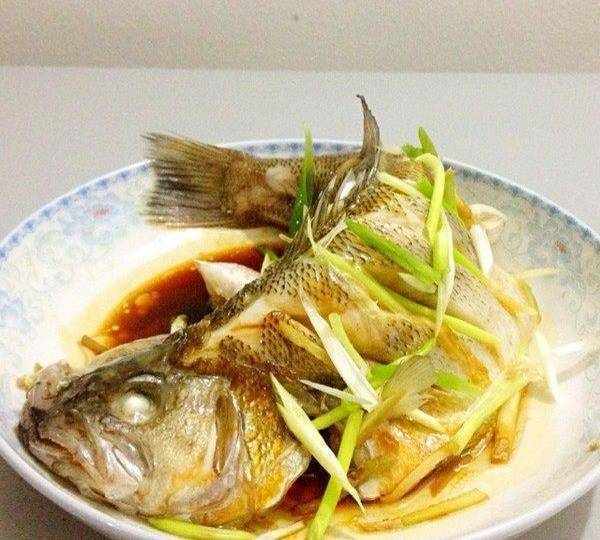 清蒸鲈鱼:将鲈鱼洗净,摆进鱼盘,向腹中放入葱姜,放入锅中,冷水蒸七八分钟,焖3-5分钟