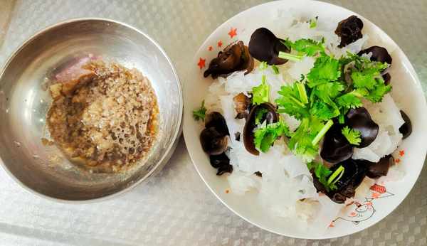 食材:木耳和银耳,油,盐生抽,香醋,蒜末,鸡粉,白糖,料油,香油,香菜