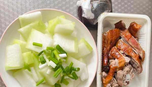 食材:冬瓜,熟烤鸭,香葱,大料瓣,花生油和盐