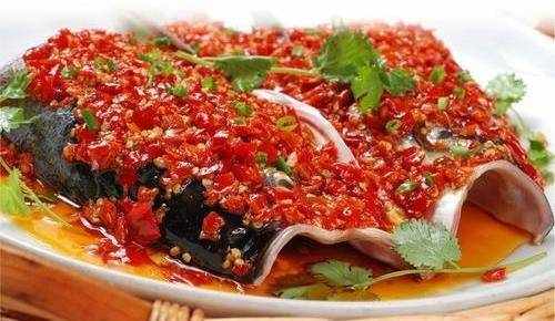 蒸好的鱼头,掀开锅盖就能闻到辣香浓的剁椒味,鱼嫩辣椒香。