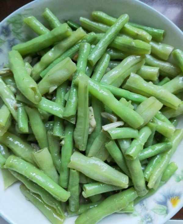 食材:长豆角300克,蒜末少许,盐半勺,肥肉适少许。