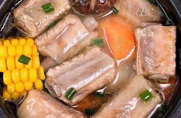 1.准备好排骨、玉米、胡萝卜、香菇、姜片和葱花,然后将排骨冷水下锅焯水,加入一勺料酒和两块姜片去腥,煮开后,撇去浮沫,再捞出沥干水分,放入炖锅中。