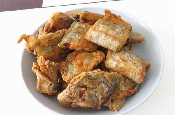 做法:带鱼去内脏洗干净,用剪刀剪成小段;用盐和五香粉抓匀腌制一会儿;将面粉平铺在盘中,将带鱼放入面粉中,两面沾上面粉,并拌掉多余的;锅中倒入油,烧至六成热时将带鱼放入炸至两面金黄,捞出沥油即可