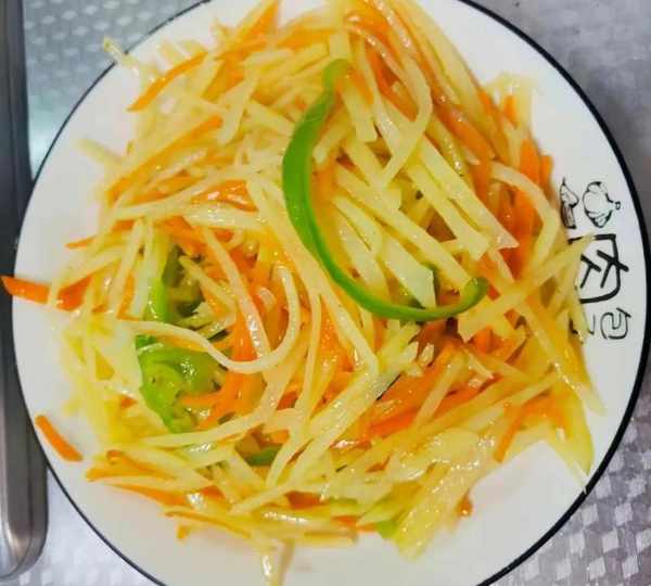 食材,土豆,红萝卜,青椒,花生油盐,鸡精,白醋,花椒粒,蒜末,鸡精