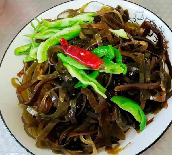 食材:海带丝,丝青,红椒,蒜末干辣椒,生抽,香醋鸡精