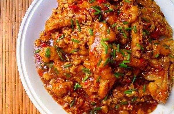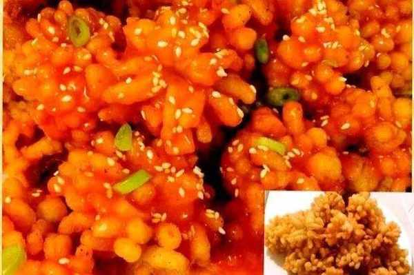 5、锅中剩少许底油,加入番茄酱,盐和醋,还有淀粉等,炒香,趁热淋到炸好的鱼上,最后芝麻葱花点缀,开吃喽~