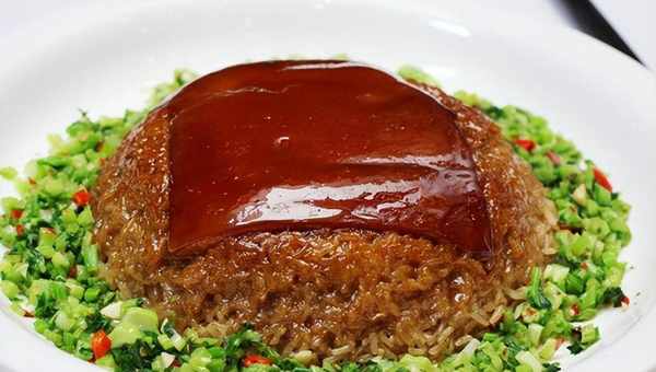 4.每位上米饭一碗,就餐时将水鱼的胶汁浇在米饭上与米饭拌匀。