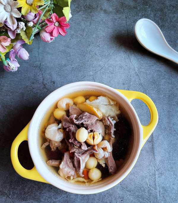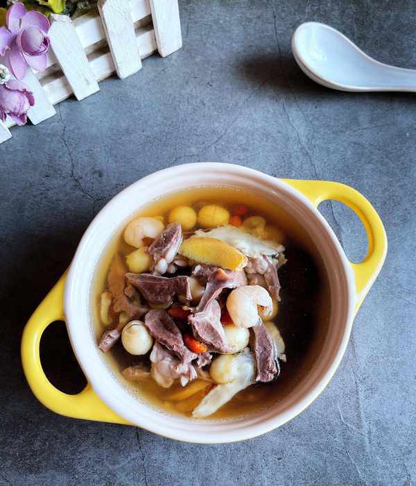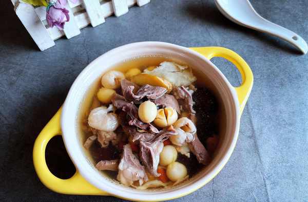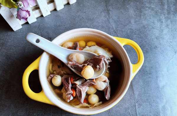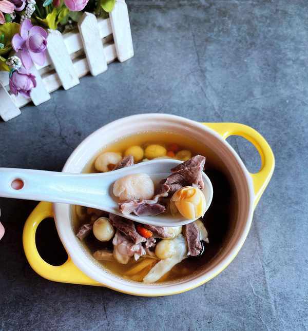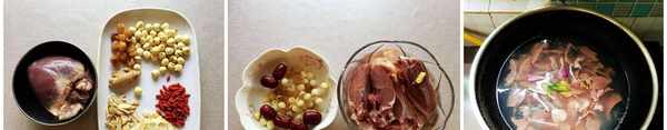 原材料:猪心1个,莲子30克,桂圆30克,黄芪10克,当归5克,红枣6粒