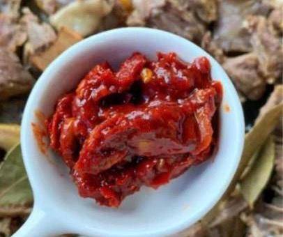 第六步:锅中再加入一勺豆瓣酱,翻炒均匀后加入两勺生抽,一勺老抽,翻炒均匀