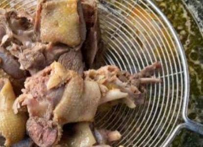 第四步:焯水后的鸭子捞出放入清水中洗净,然后沥干水分