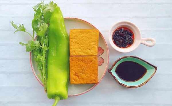 主料:豆腐干、香菜、青椒