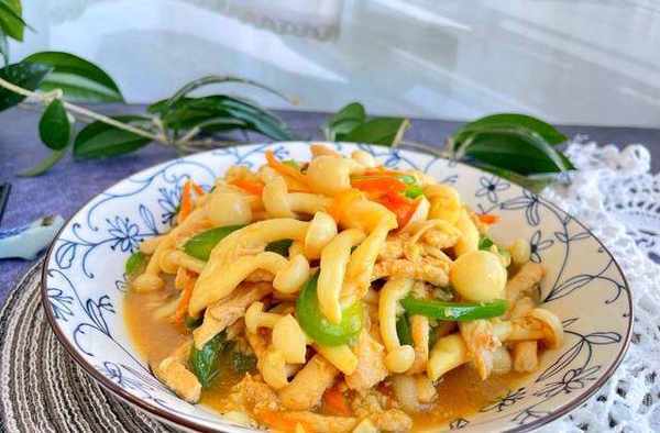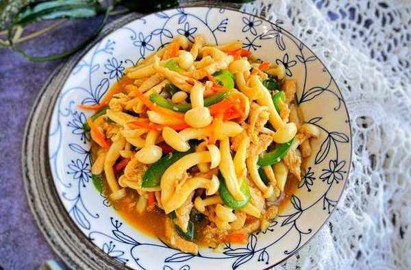 &鲜美的鸡胸肉炒海鲜菇&