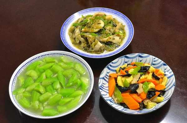 夏天天气炎热,人的食欲下降,吃啥都觉得不香了,因此夏天的三餐既要开胃又不能过于油腻,特别是晚餐,清淡鲜美是首选,天热,做的菜最好是简单快手,三两下就能上桌的,所以,夏天下厨房我喜欢做快手简单又不失营养的菜,来看看今天我们家的晚餐,小炒玉米笋,雪菜青椒黑鱼片,清炒丝瓜简单3个菜,家人都喜欢,30分钟就能上桌开饭。