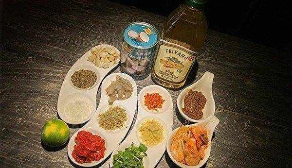 材料:蘑菇、鲜虾仁、带壳鲜虾(事先烤过,如果没有炬炉就煎熟。这样的带皮虾会特别香,起提味作用。)辅料:黑椒、盐、香茅、茄膏、指天椒、蒜蓉、香菜、冬阴功酱、青柠檬、椰浆、橄榄油