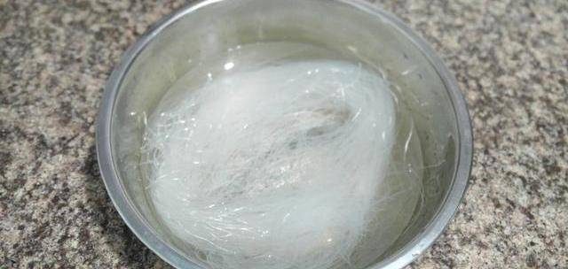 1、粉丝放入盆中倒入温水浸泡至软,水没过粉丝为宜。