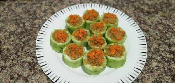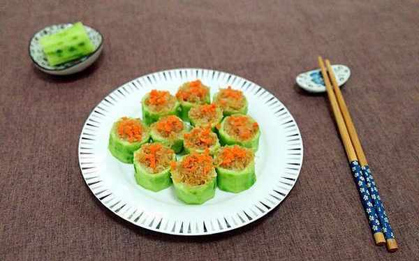 2、丝瓜内可酿入自己喜欢的食材。