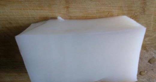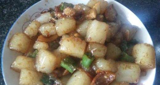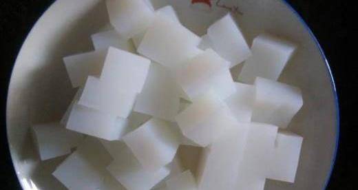 把凉粉先切成片,然后改刀切成丁状,注意不要切得太碎,有些凉粉很容易再翻炒的过程中碎掉。