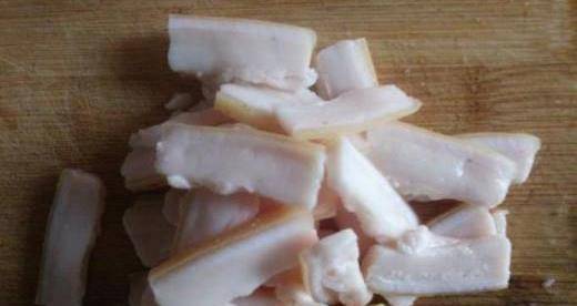 接着把肉片切成小片,小编这里用的是肥肉,炒凉粉油多才好吃,刚好可以利用肥肉煎很多油出来。