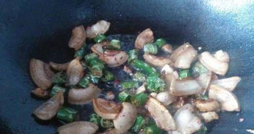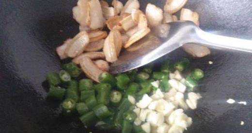 煎出来的油刚好可以用来炒菜,接着把蒜和辣椒一起放进锅里煎,煎出香味即可。