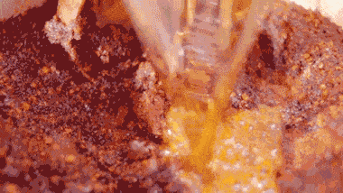接下来我们需要关火装盘,油温继续加热,等到冷却到150度左右,我们可以分三次倒入的辣椒粉当中再加入热油的时候,一定要记得快速地搅拌,避免辣椒粉被热油烫熟。再滴入几滴香醋给辣椒粉进行提香,用筷子快速的搅拌均匀,做好的辣椒油放上几天颜色就会变的逐渐红了,吃起来的口感特别的香了。
