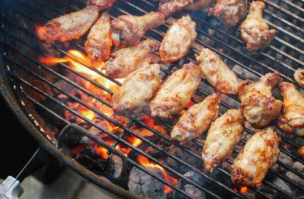 第二天,我为两个区域的间接火设置了烤架。间接烹饪可确保机翼完全煮熟而不会在外部烧焦。