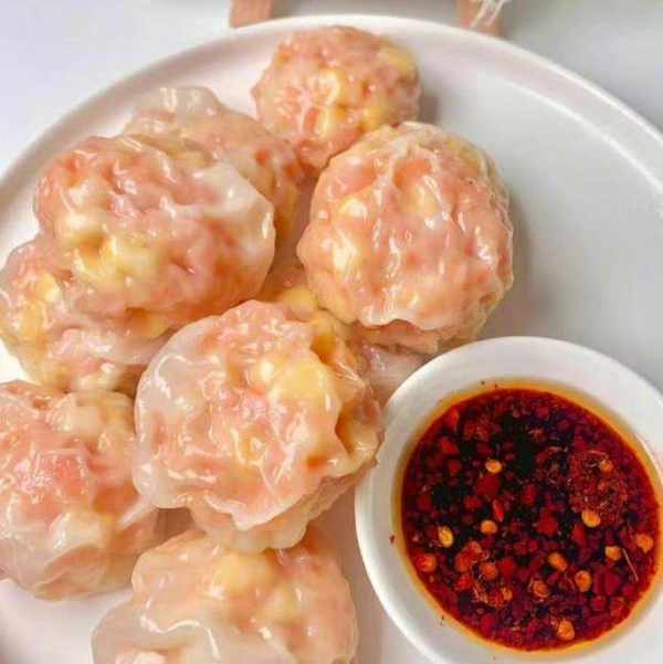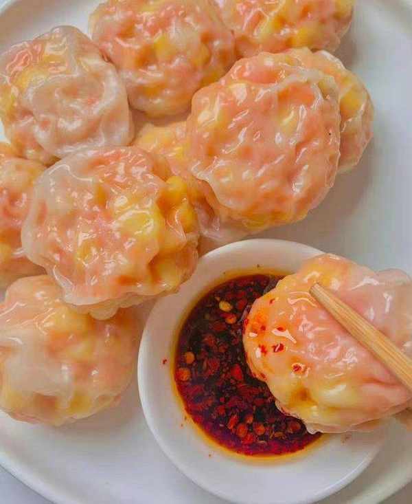 3、根据自己的口味调个料汁,然后将这个玉米虾饺,蘸着调料吃就OK啦。