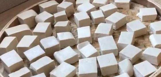 买上二斤老豆腐,洗净,切成小方块,铺上干纱布,把豆腐块摆上,豆腐块与豆腐块之间要留空隙,不要挨太紧。开火蒸制水开冒气一分钟就关火,打开后晾干水分,找一个密封性比较好的纸盒子或者保鲜盒。将豆腐块重新摆放好,等待其自然发酵长霉。