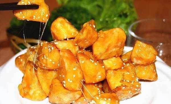 土豆裹着糖入肚,带来甜糯绵软的口感,也是一道下酒甜点。