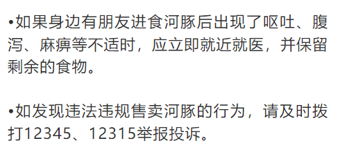 今年3月份以来,浙江省绍兴市已接连报告2起因食用河豚而引起的食源性聚集疫情,有3人中毒到医院就诊,其中重症2例,发生场所均为家庭聚餐。