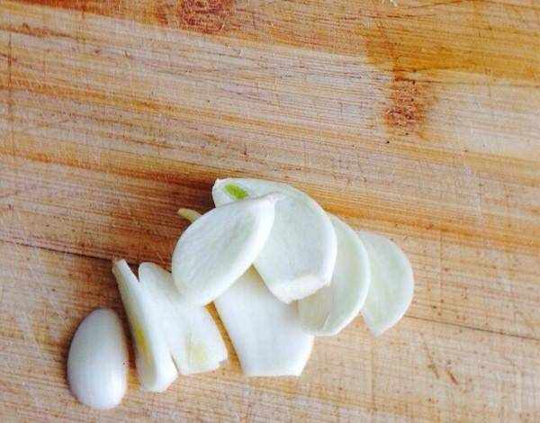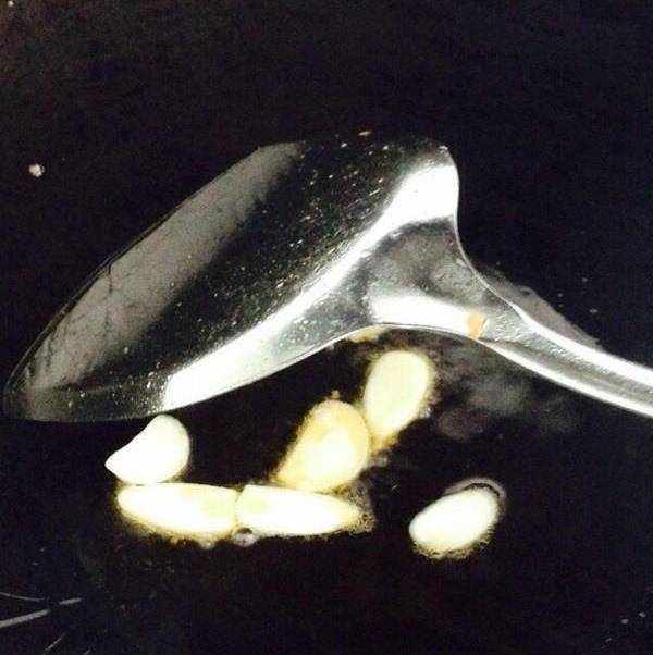4.锅烧热倒入适量的菜籽油,烧热后加入蒜片爆香,倒入生菜