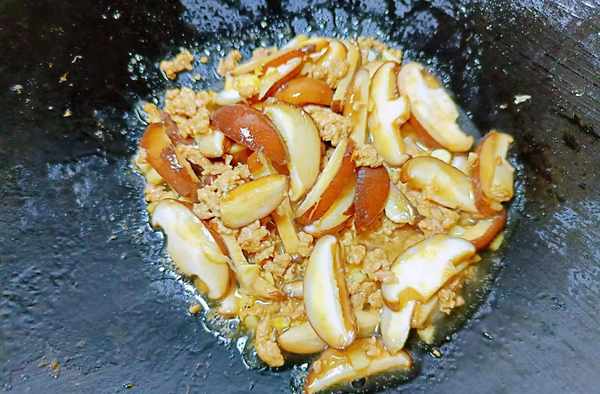③热锅冷油,倒入肉末煸炒。等肉末变色后加入生抽提鲜,继续爆炒几下。