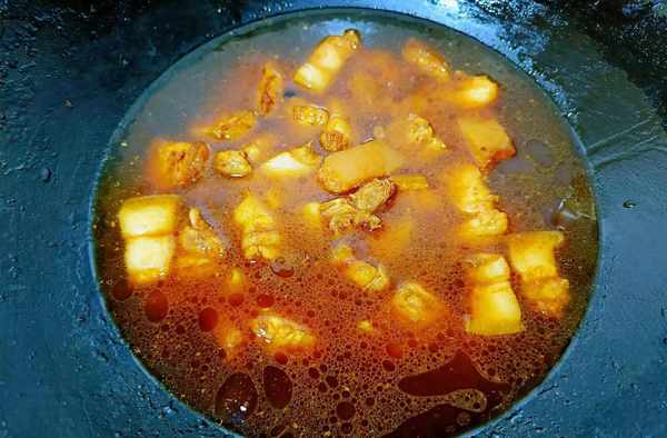 ④加开水没过五花肉,开大火煮,水开后改成中火焖煮。