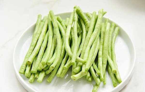 1、把豆角摘洗干净并沥干多余的水分,切成均等的豆角段。