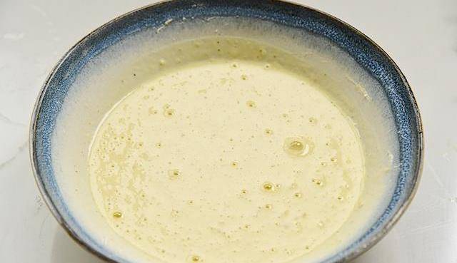 4、再加入面粉、盐、白胡椒粉、鸡粉、芝麻油混合搅拌成细腻的面糊。