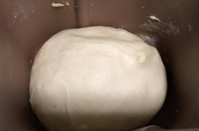 4、紧接着,启动面包机的揉面程序,将其揉成一个光滑的面团后进行发酵。