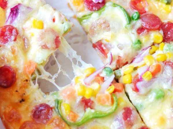 12、将制作好的披萨从烤箱中取出,用刀切开,趁热吃,松软拉丝,自己做的用料十足,比买的好吃太多啦,赶紧试试看吧。
