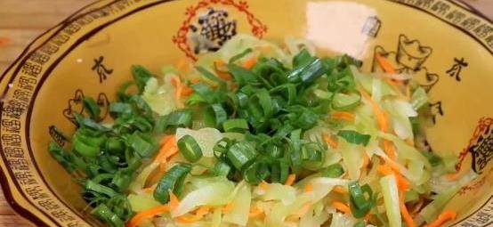 5、锅中加入少量的食用油烧热,然后倒入鸡蛋液炒熟,在炒的时候用筷子快速滑散,将其炒成鸡蛋碎,炒熟之后关火待用。腌制好的莴笋和胡萝卜,咱们将它里面的水分剂=挤干,然后放入碗中,碗中再放入葱花,鸡蛋碎和胡椒粉,加点蚝油,用筷子充分搅拌均匀,馅料就做好了。