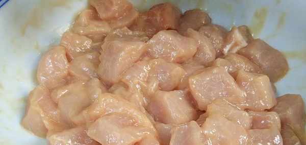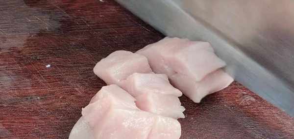 1.准备一块里脊肉,先切成条,然后切成小方块,厚度不要太厚,也不要太薄。
