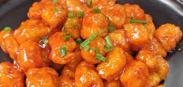 它表面有一层粘稠的汁液,这是酸甜汁,吃着酸甜可口。酸甜汁裹着最外那一层是酥脆的外皮,吃着 很香,最里面就是嫩滑的里脊肉。口感层次非常丰富,一口一个,每一口都是对舌尖的奖励,太美味了。最这道菜有两个比较重要的,一个是酥脆的外皮,一个是酸甜汁。外皮裹粉可以买,也可以自己调,一般面粉加淀粉再加点吉士粉,没有的可以不放,做法很简单。酸甜汁大部分就是番茄沙司调制而成,因为个人口味不同,所以酸甜的口感会有差异,这个要看个人喜好。