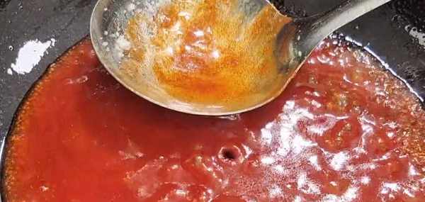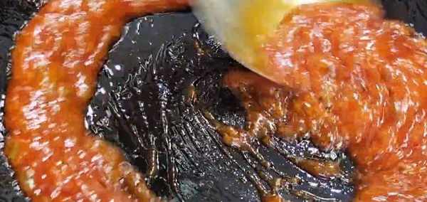 12.最后倒入适量的油,用锅铲不停地转动,一直到酱汁起泡泡即可。