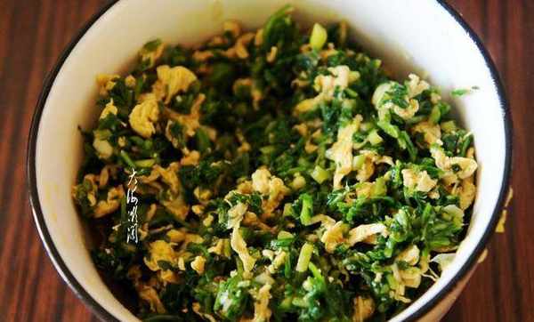食材:面粉300克;鸡蛋3个;荠菜、油、盐、葱、味极鲜酱油、蚝油、五香粉、胡椒粉、料酒各适量。