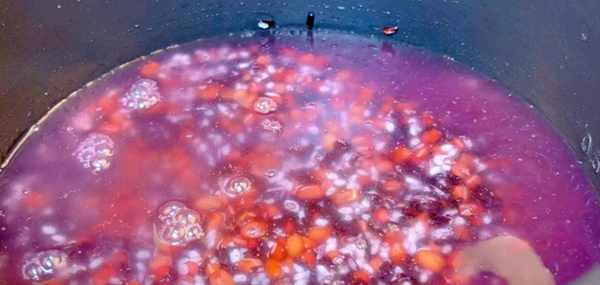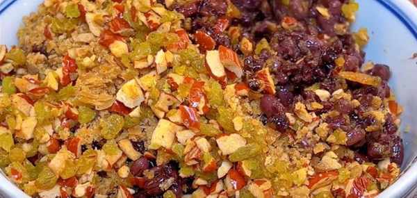 5:红豆煮熟后,装入大碗中,加入适量红糖,和红枣葡萄干,搅拌均匀。