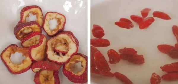 准备食材:薏米、赤小豆、山楂、枸杞、冰糖