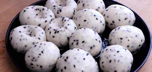 5:平底盘涂上一层油,放上芝麻球,再刷上一层油,等待醒面1小时。