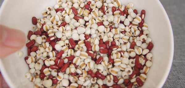 1:碗中加入100克薏米、20克赤小豆,倒入清水洗净,捞出控干水分。