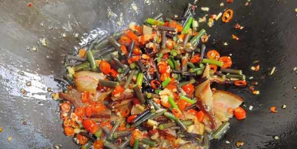 原料:蕨菜,腊肉,大蒜,辣椒
