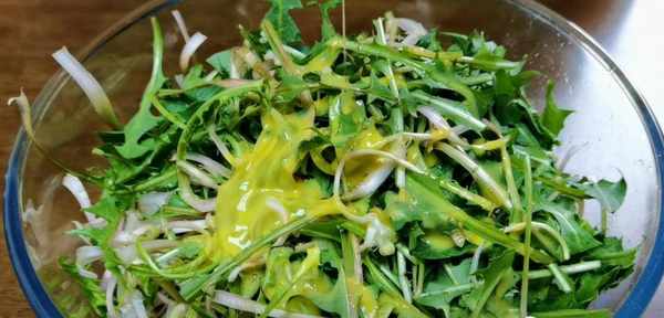 第7步、倒料汁到蒲公英中,搅拌均匀即可食用了。