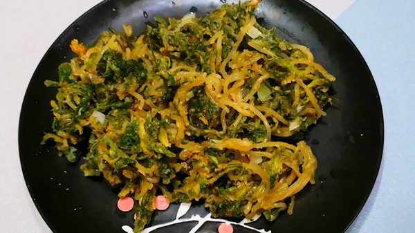 4.大约在水开以后再蒸10分钟白蒿就熟了,这时开锅取出装盘,然后再撒上剁细的蒜末,倒一点味极鲜,搅拌均匀就可以吃了,营养又美味!
